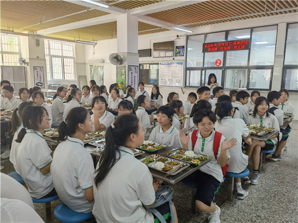 开餐之前吴俊副校长为初三学子加油打气:中考是初中三年最高光的时刻,希望同学们带着老师们的祝福,尽情享受这一份以爱命名的午餐,全力以赴,为梦想奋力拼搏,怀揣更大的勇气面对即将到来的中考。