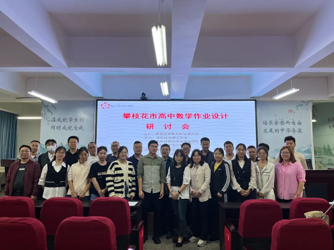 为了深入学习贯彻党的二十大精神,适应新高考的改革,落实立德树人根本任务,推动对课程标准、教材教学、考试制度、育人方式的理解,促进作业设计能够更好地反映核心价值、学科素养、关键能力、必备知识,整合数学教研组的教学资源,增强数学教研组的凝聚力、创新力,打造攀西地区优质教育品牌,6月13日下午,市七中数学教研组根据攀枝花市教育科学研究所的安排,联合张栋成名师工作室、索争科教育体育专家团队、唐毅卓越名师工作室、邱强生新秀工作室、赵建旺新秀工作室,在西城校区博通楼二楼会议室开展了攀枝花市高中数学作业设计研讨会。