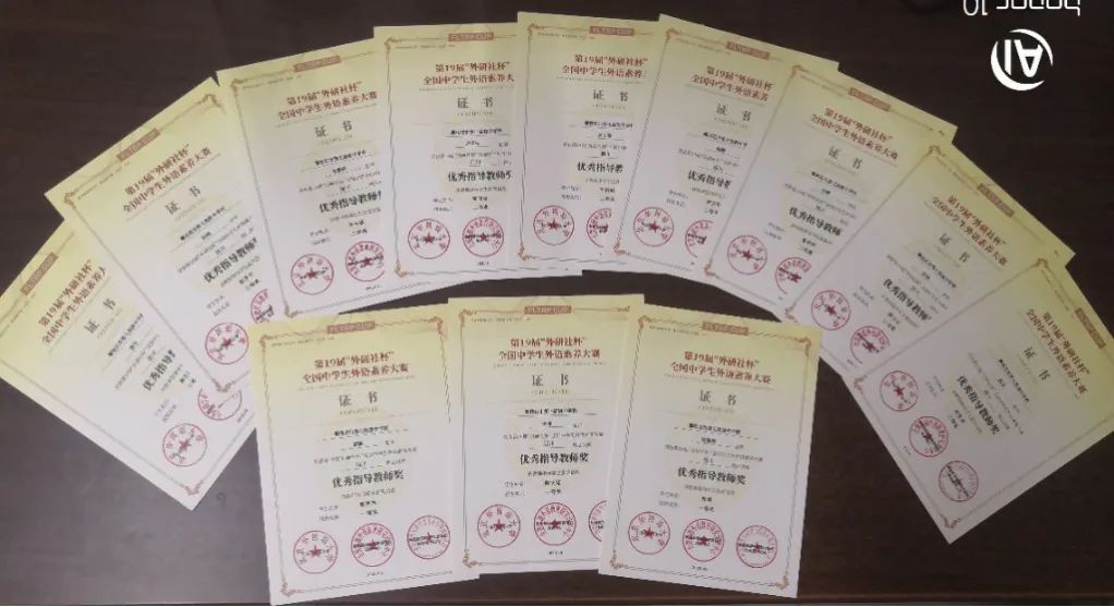 近日,第19届“外研社杯”全国中学生外语素养大赛的奖状陆续送到获奖者手中。其中,我校陈长廷获得国家一等奖,晏梓翔等6名同学获得省一等奖,杨冉希等9名同学获得省二等奖,潘瑜文等7名同学获得省三等奖,13位英语教师获得“优秀指导教师奖”。