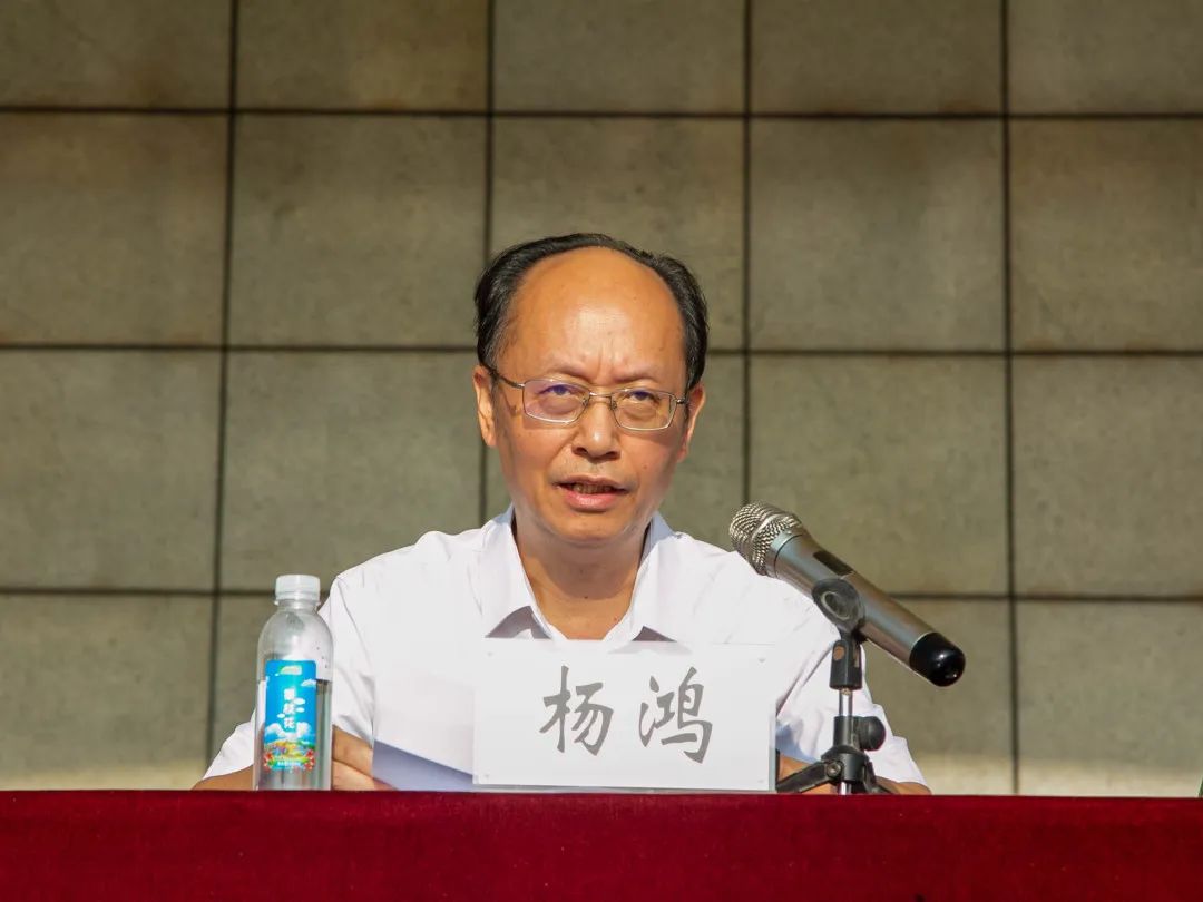 学校党委书记杨鸿,党委副书记、校长李刚代表学校向辛勤付出的全体教官和老师们表示感谢,向认真参训的同学们表示慰问,希望全体新生将在军训中的所见、所学、所思、所感在心中生根、发芽、开花、结果。